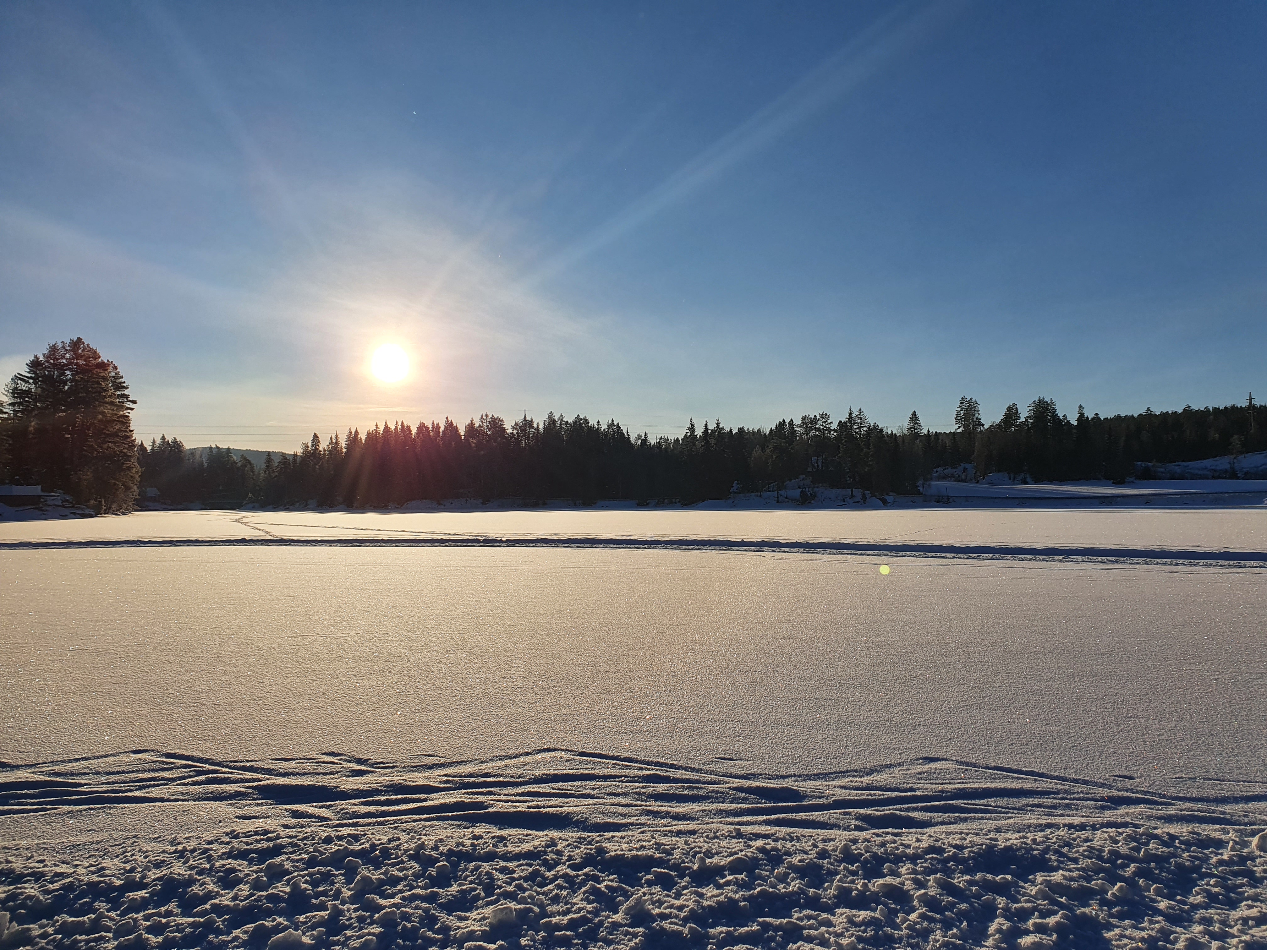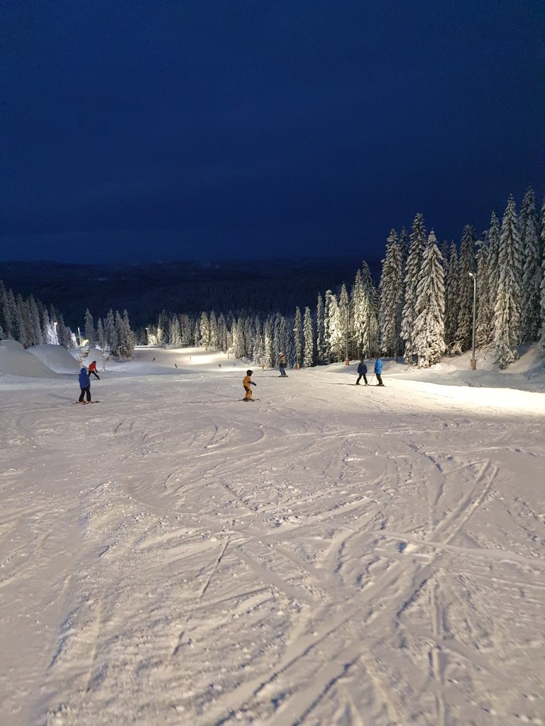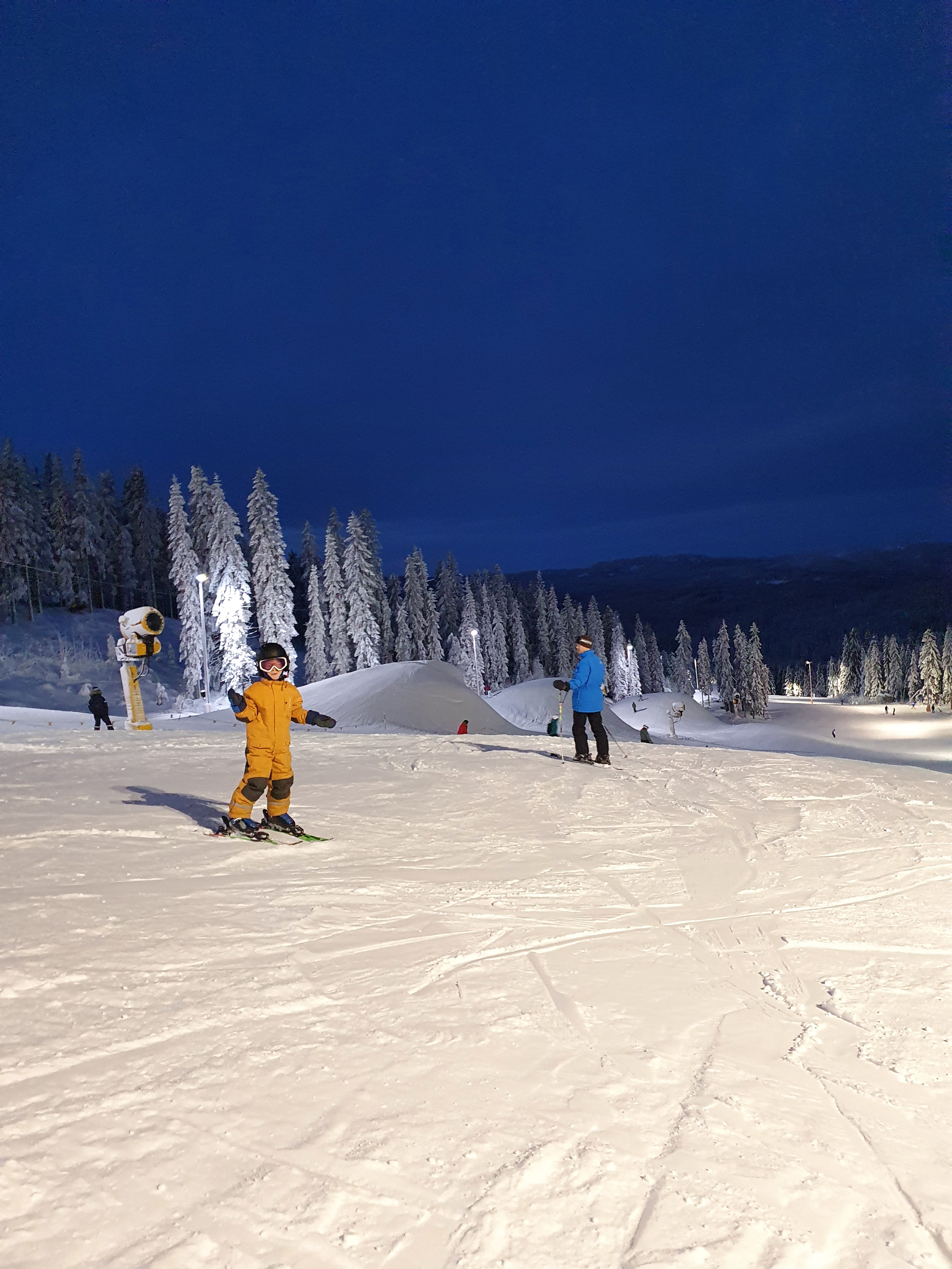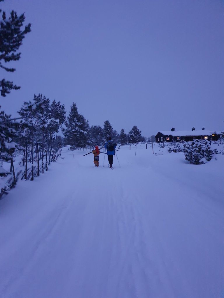 Etter pakking av en flaske saft og to Stratos er vi på leting etter skiskoa til Elvin. De kan jo ikke være så langt unna, de ble brukt for bare noen dager siden. Etter noen runder dukker de opp, i en av mange blå IKEA-poser i kjelleren. Skoa er på, og vi kjører til parkeringen ved Stallerud-hytta. Det er strålende sol, blå himmel, vindstille og ti minusgrader.