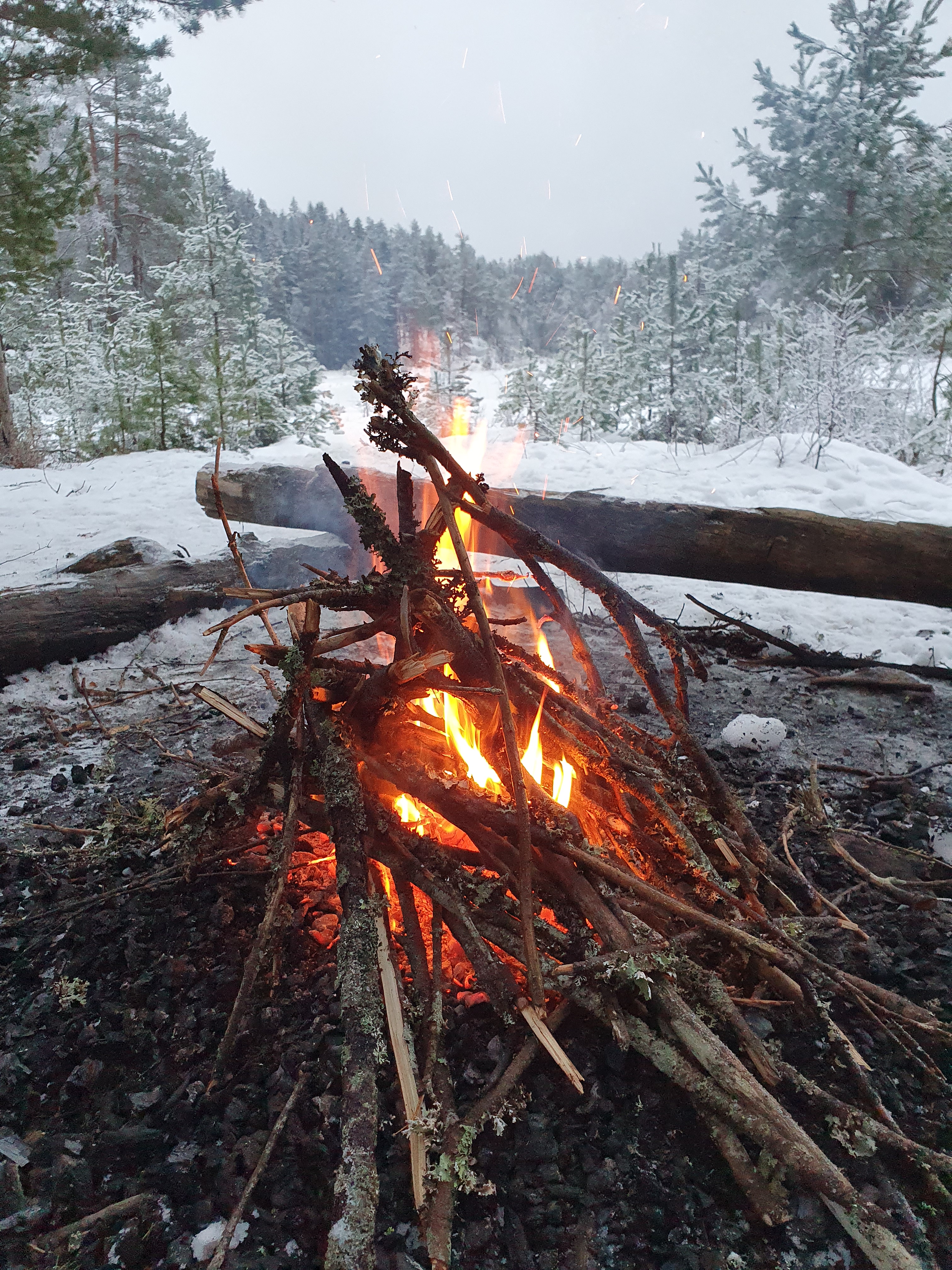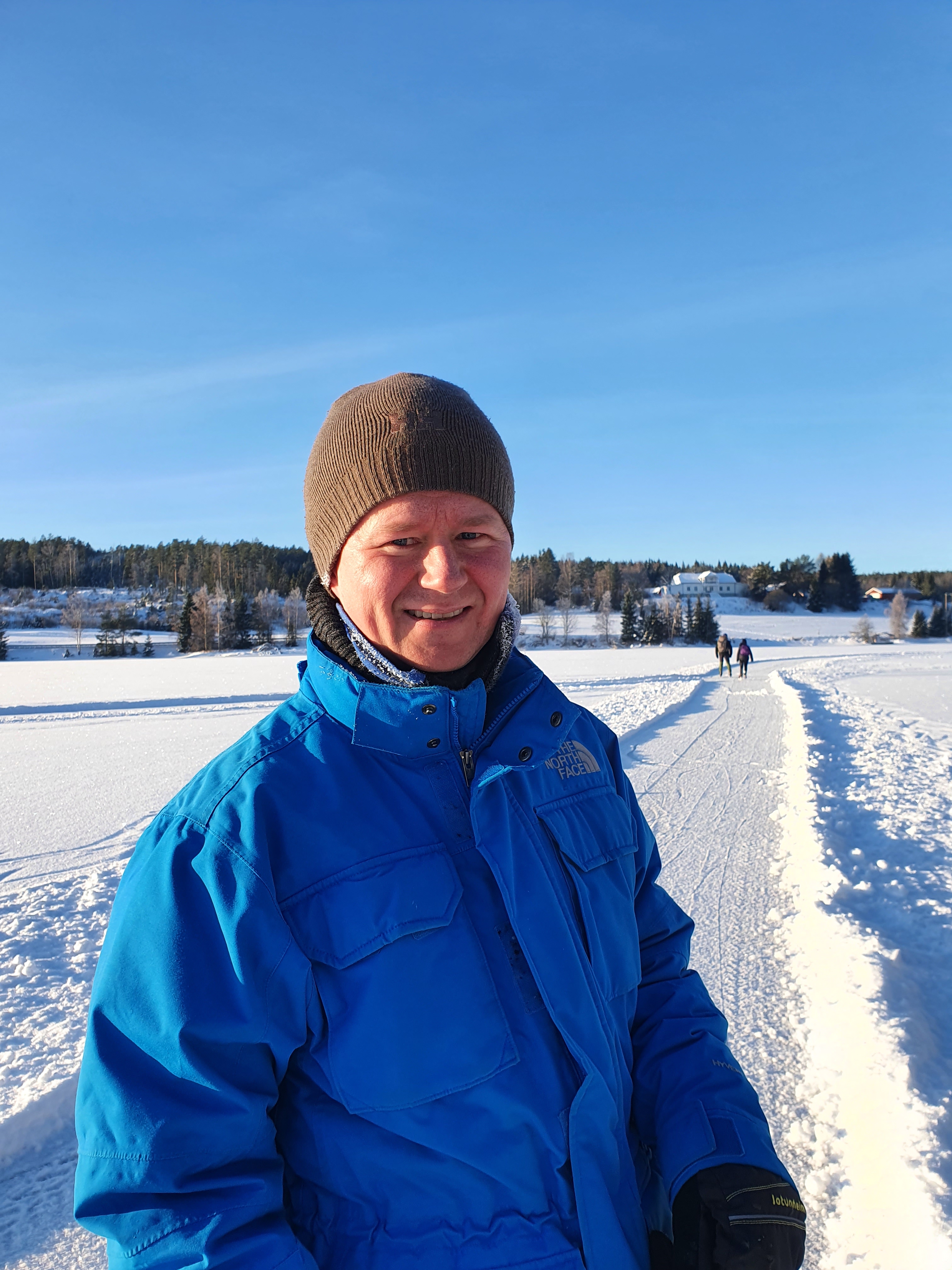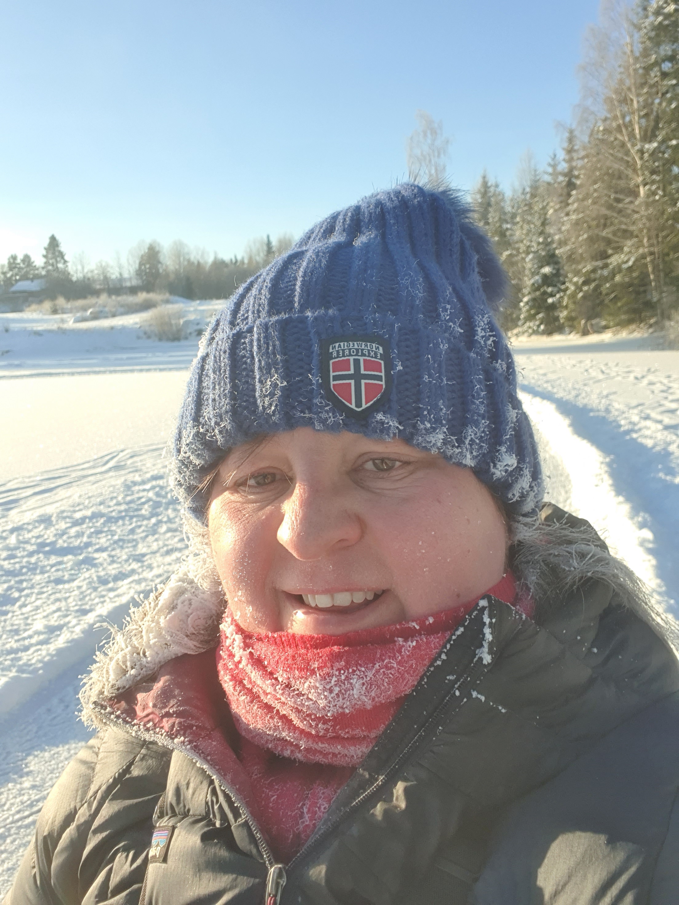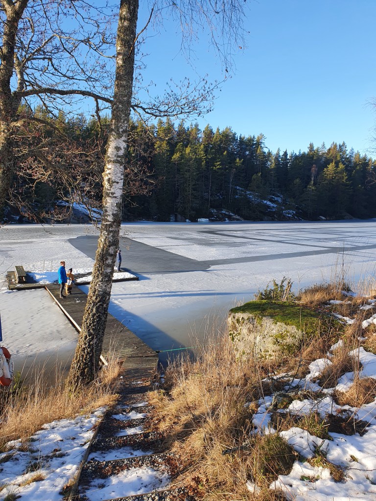 Etter pakking av en flaske saft og to Stratos er vi på leting etter skiskoa til Elvin. De kan jo ikke være så langt unna, de ble brukt for bare noen dager siden. Etter noen runder dukker de opp, i en av mange blå IKEA-poser i kjelleren. Skoa er på, og vi kjører til parkeringen ved Stallerud-hytta. Det er strålende sol, blå himmel, vindstille og ti minusgrader.
