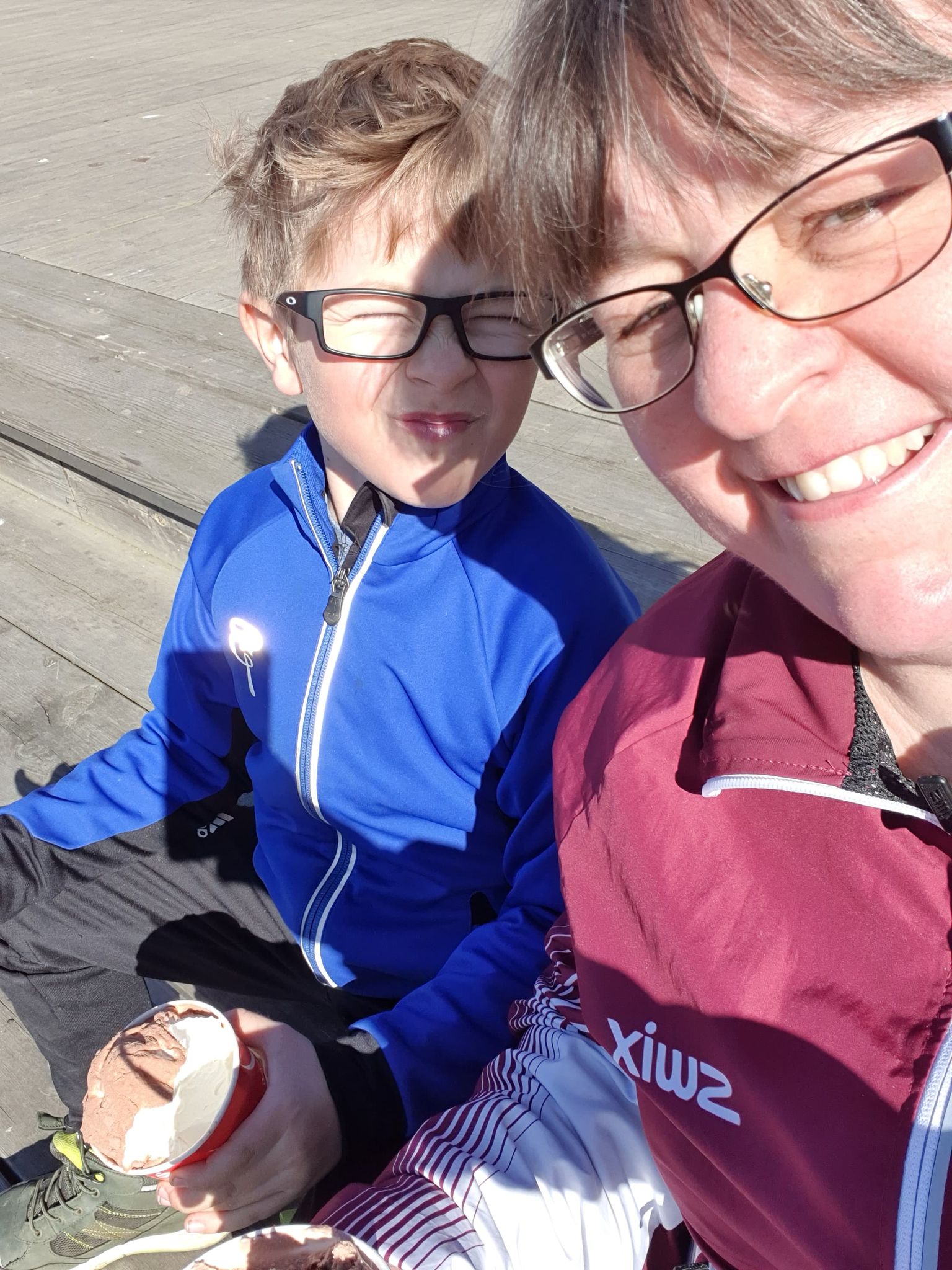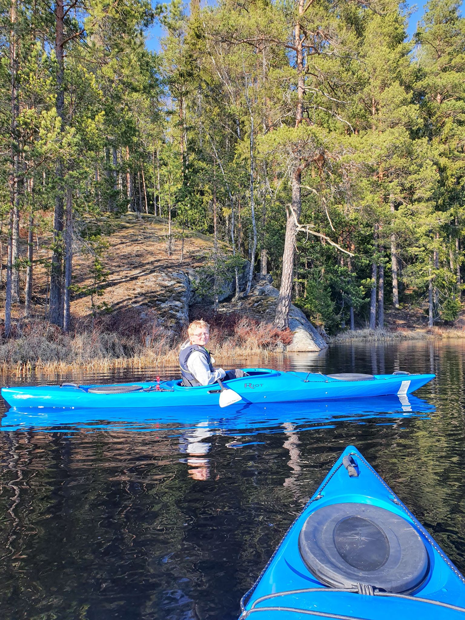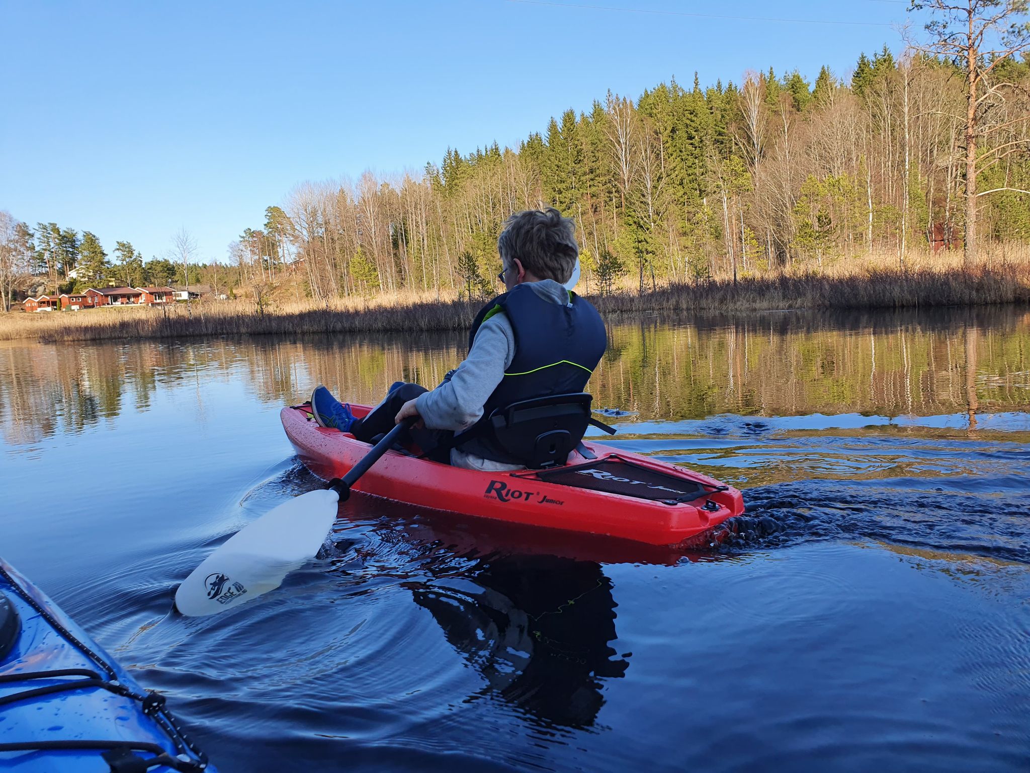 Når kajakken blir ledig vil 12-åringen også teste. Han er større og tyngre, men godt innafor maksvekta på 55 kilo. Til å begynne med synes han kajakken er veldig vinglete, og er redd for å tippe rundt, men etter å ha padla en liten stund føler han seg mer komfortabel og tar en liten tur. Han klarer også fint å manøvrere den. Riktignok bruker han en voksenåre, og slipper å bli klissvåt slik som lillebroren.