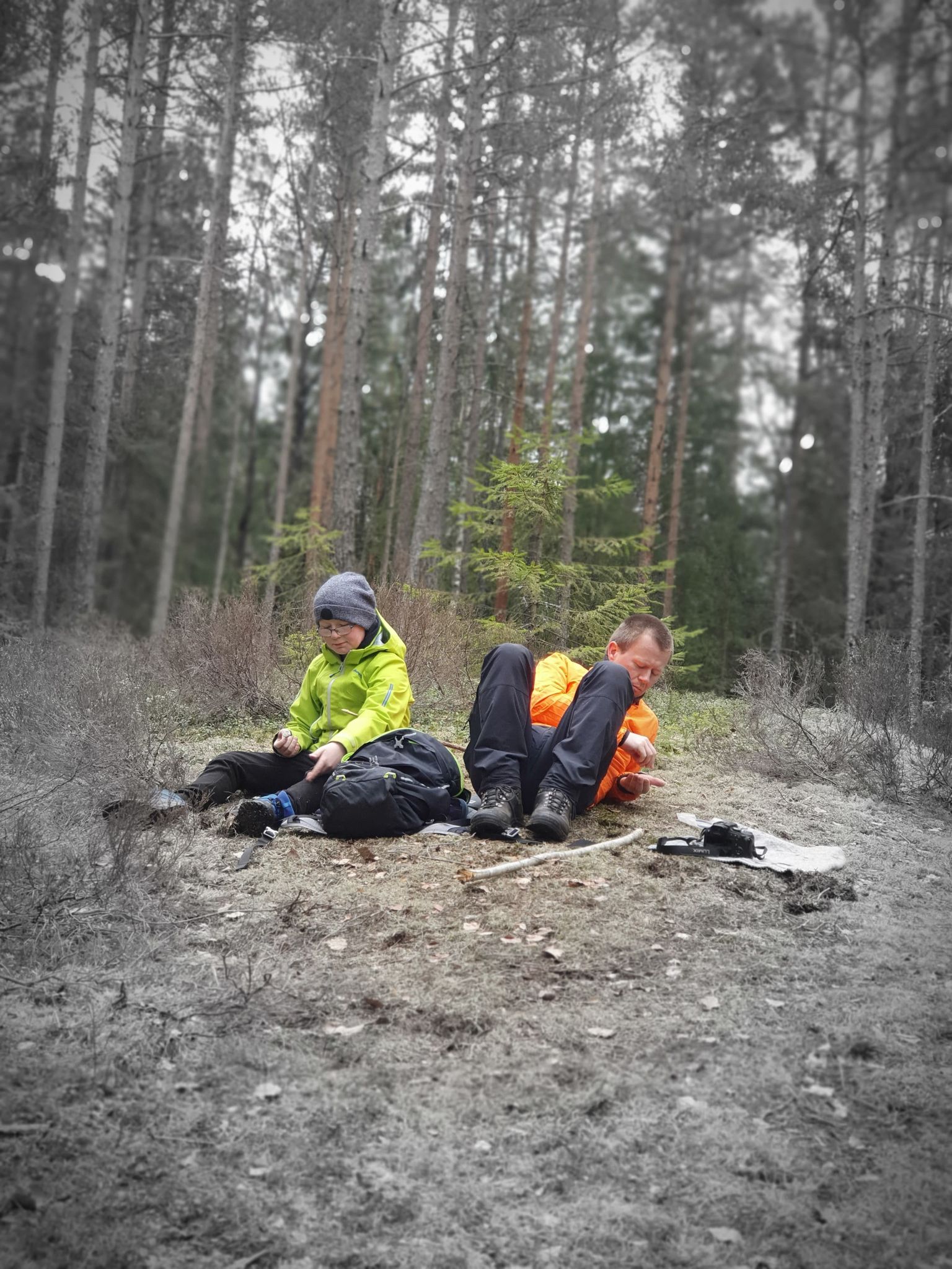 Jeg ser etter kort tid at buksa til 8-åringen er litt våt. Da innser jeg at årene hans ikke har dryppringer, så hver gang han tar et padletak så renner vannet ned i fanget på han. Dette kombinert med at han er litt «plaskete» i padlinga enda. Men vi padler likevel videre.