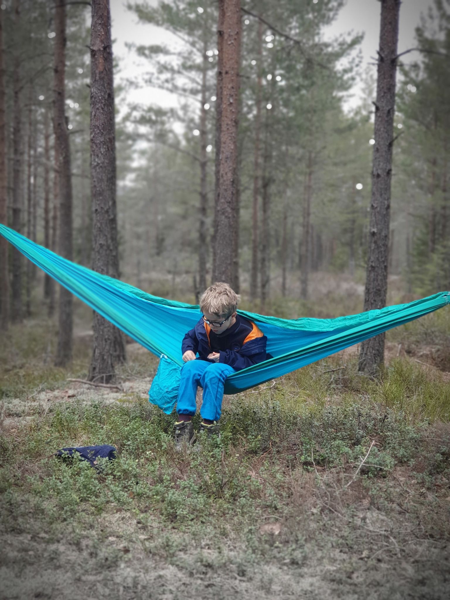 8-åringen har brukt mye tid til å sitte på denne på verandaen. Han har prøvd seg i en av våre voksenkajakker en gang, og det gikk i grunn veldig greit. Derfor var vi alle spente på hvordan denne skulle fungere.