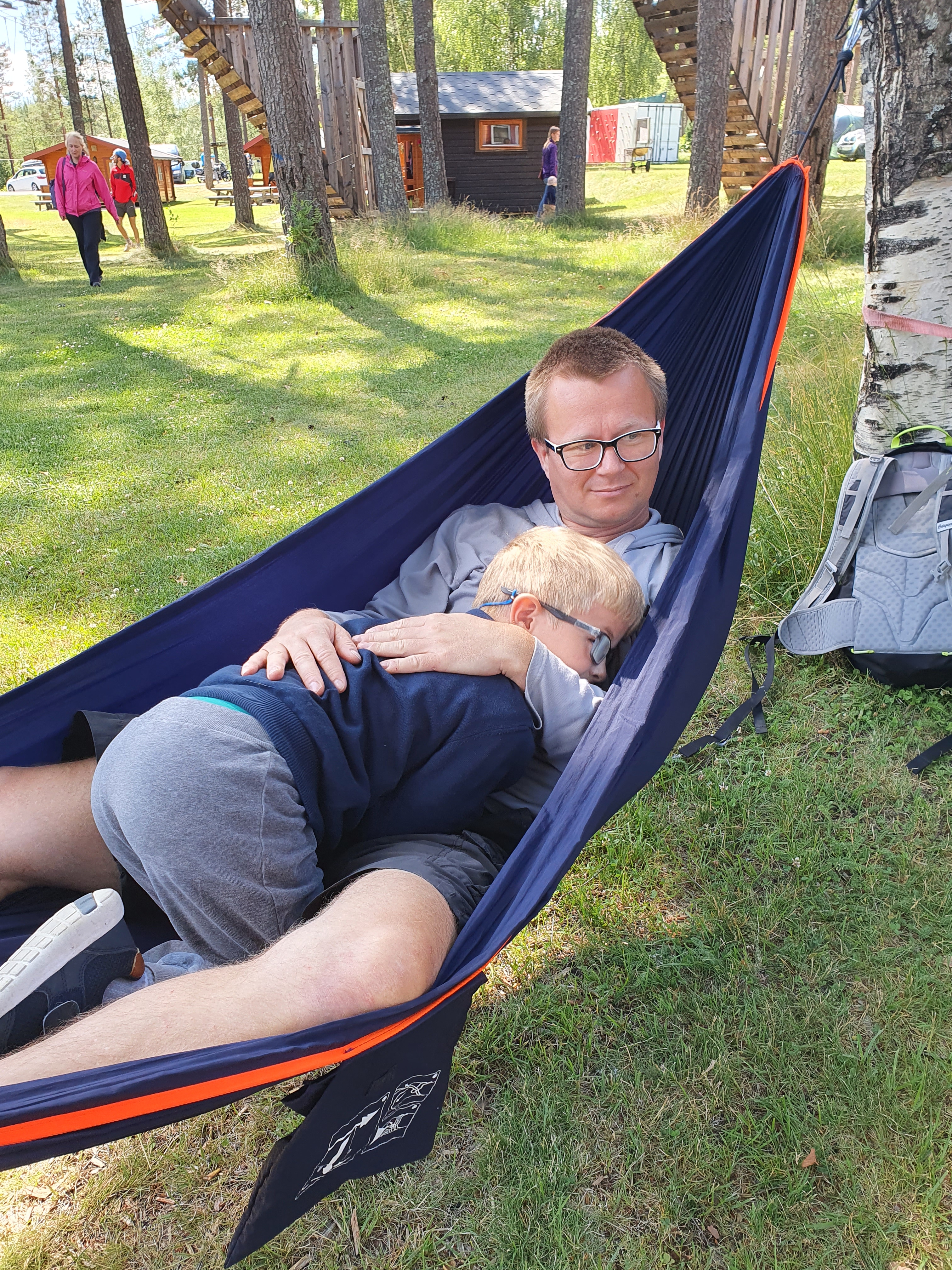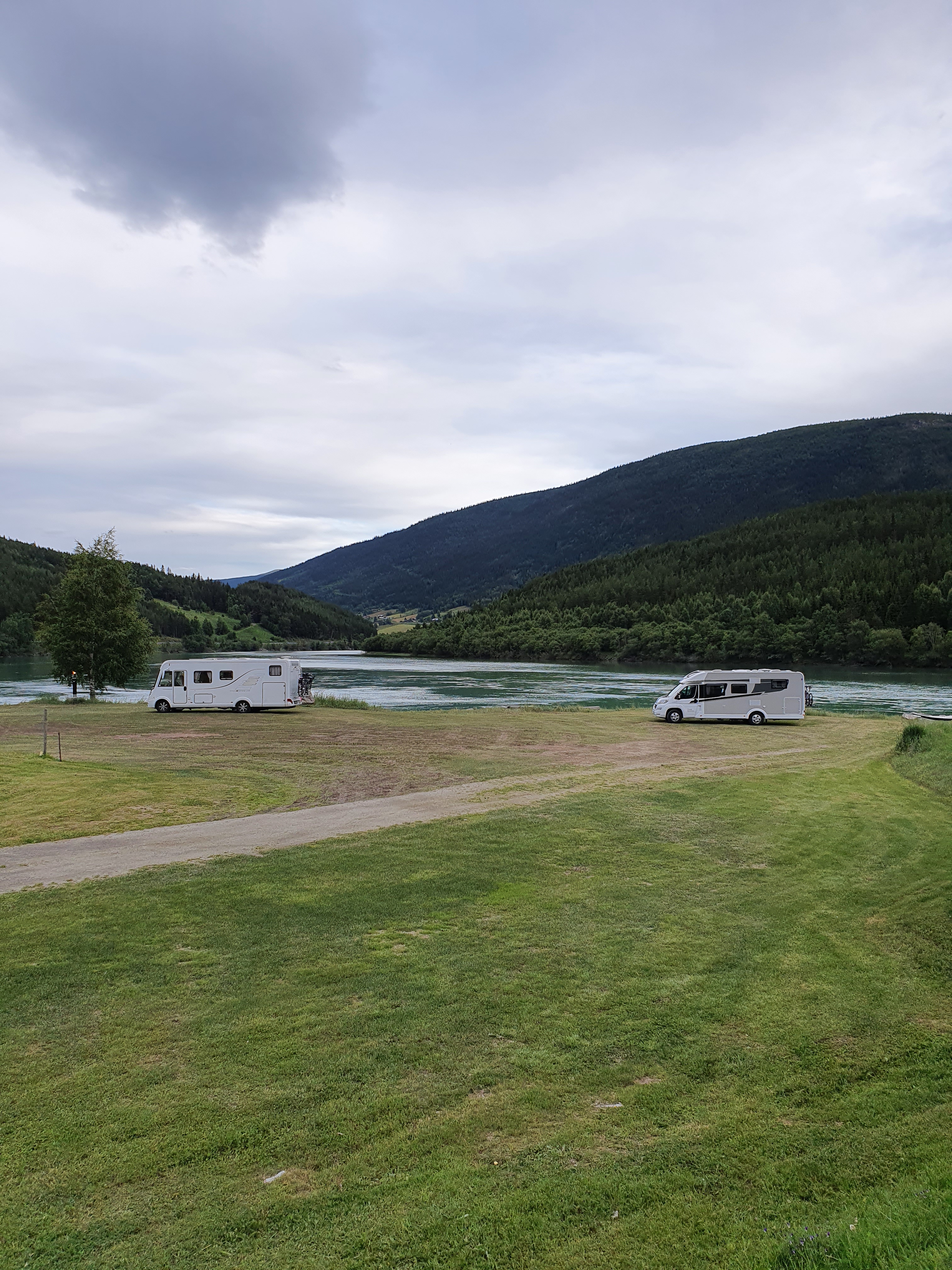 Første etappe gikk strake veien til Lillehammer for å hente gutta som hadde vært på ferie der noen dager. Planen var så å kjøre i retning Geiranger og finne en campingplass på veien. Vi kjørte til Otta, og tok av mot Vågå. Langs elva Otta stoppet vi på Holungsøy camping, de hadde ledig hytte for natta. Campingplassen ligger fint til ved elva, og bare noen km fra Vågå.