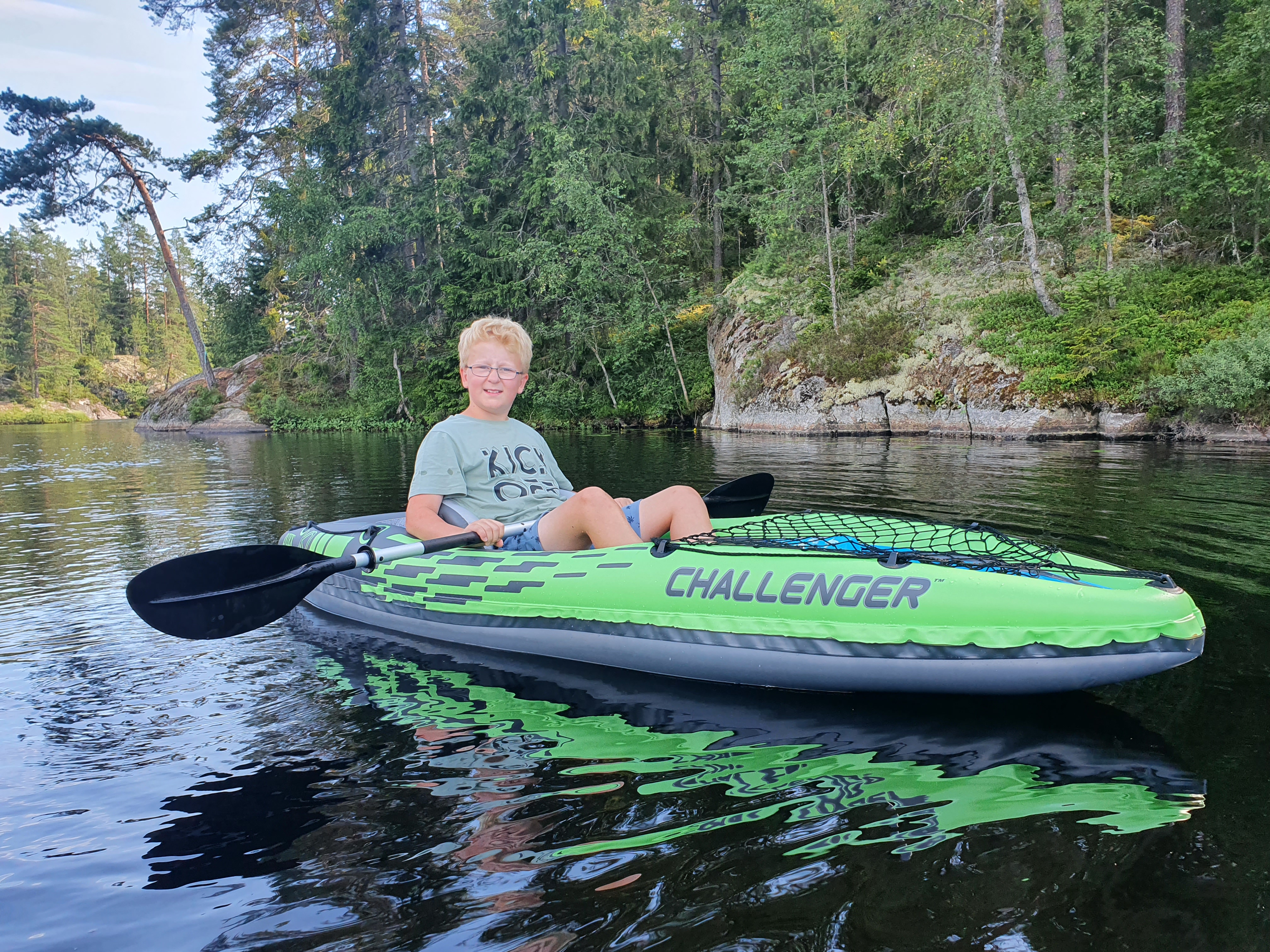 12-åringen i huset fikk en Intex Challenger K1 oppblåsbar kajakk for et par måneder siden, og har testet den grundig! Kajakken kommer i et sett med kajakk, åre og pumpe, så du har alt du trenger ved å kjøpe den!
