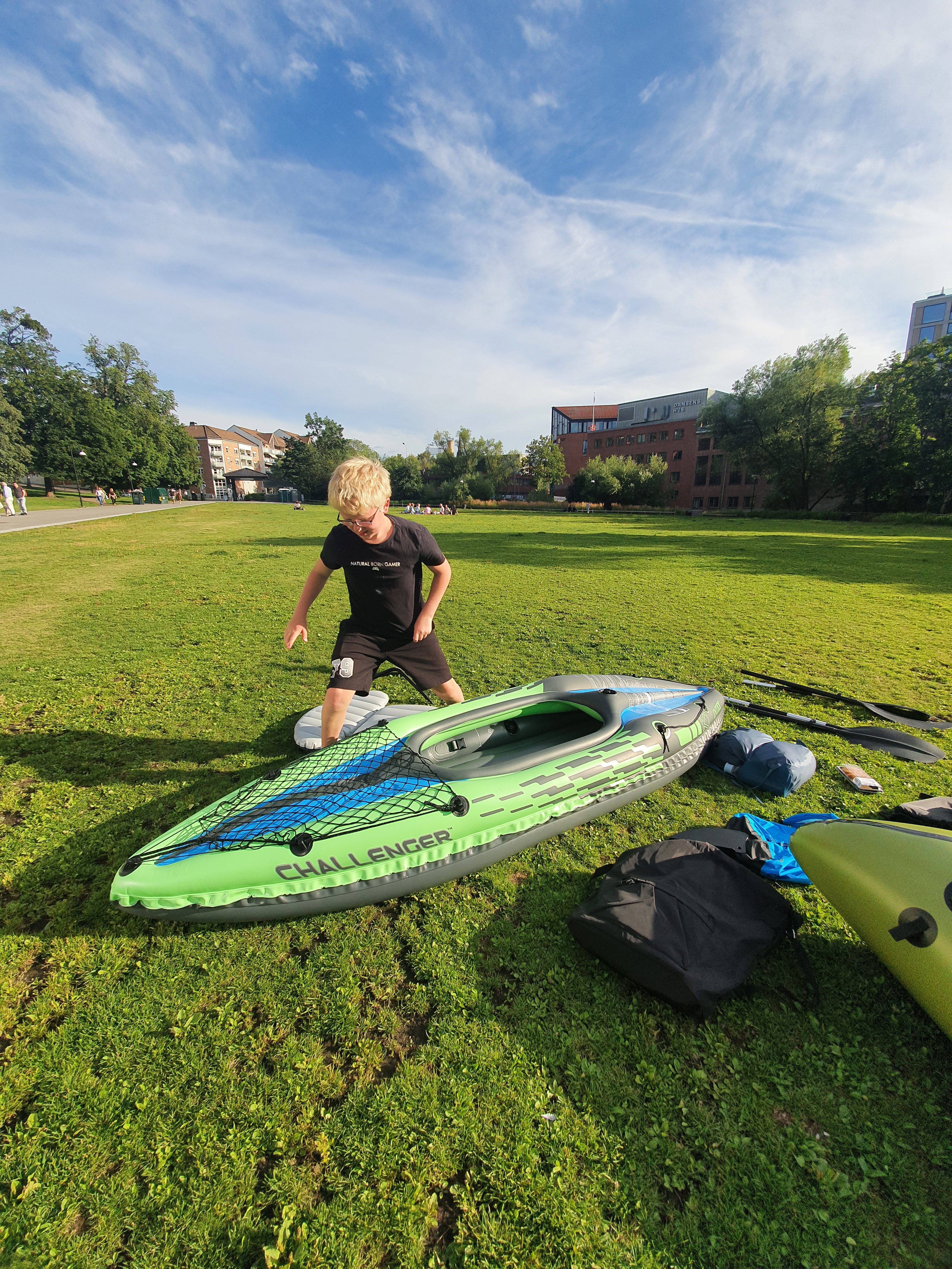 Førsteinntrykket er at dette fungerte veldig bra! 12-åringen klarer helt fint å montere og blåse opp denne helt på egenhånd. Det følger også med en kjøl, som slides på under kajakken om du ikke skal padle i grunt vann.